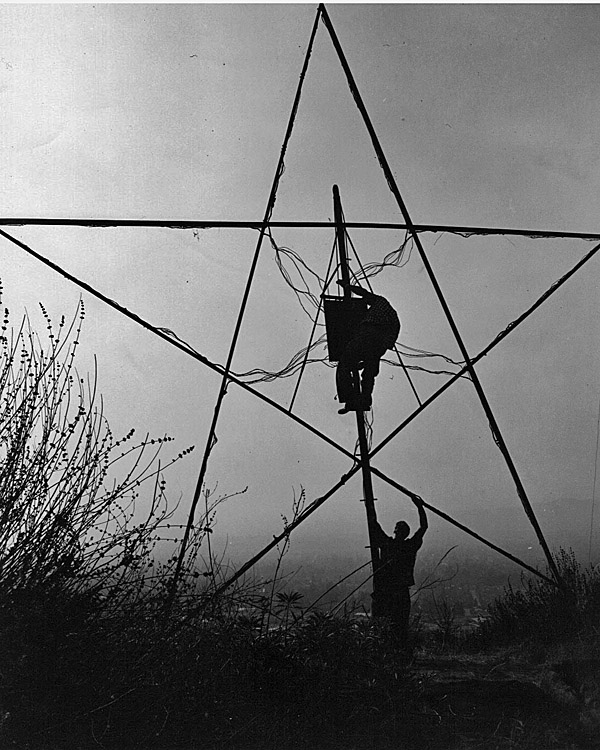 After the Star was up, it was lit for two nights for testing and observation purposes. The Star was very bright and could be seen over a wide area and as far away as South Pasadena.