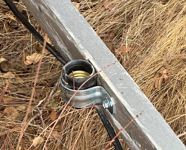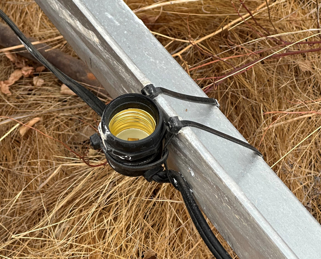 During the original rebuild in 2019, the sockets and cable were secured using zip ties. Even though they were UV Resistant they did begin to fail rather quickly. |