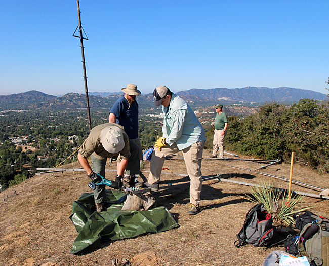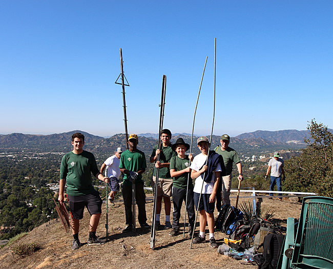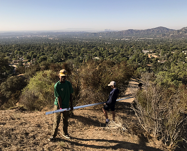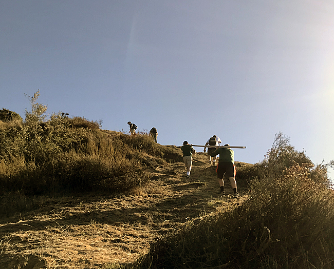 On the big day of reconstruction, Scouts from Altadena Scout Troop 1 assist by carrying the material up to the top of the hill. |